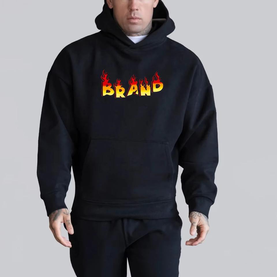 Sweat-shirts d'hiver en molleton 100% coton pour homme, coupe classique, broderie, impression numérique, motif uni, 360g, séchage rapide, respirant
