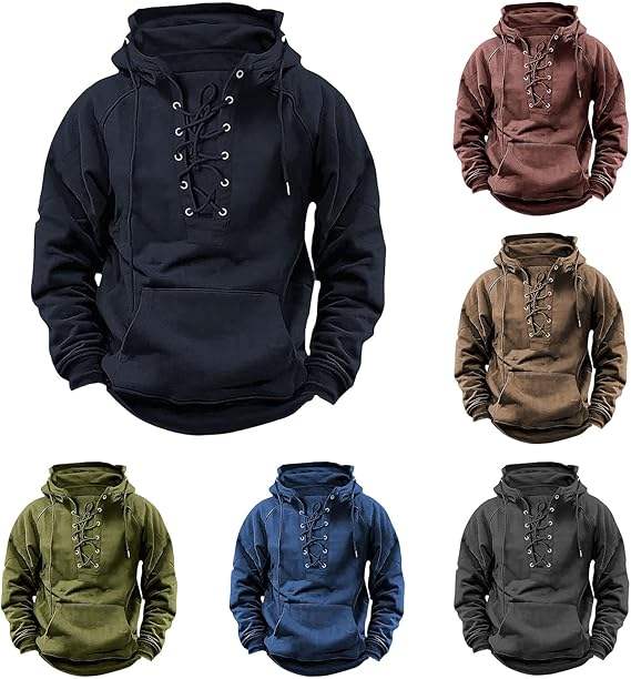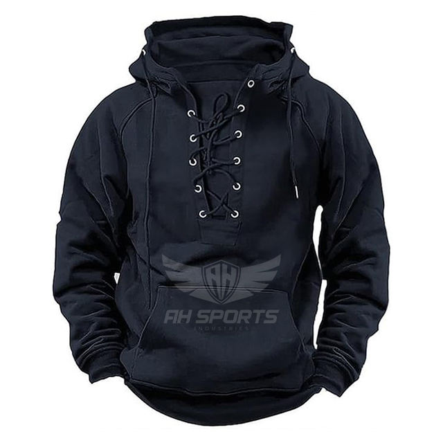 Pull-over rétro à lacets pour hommes, sweatshirts de gymnastique, sweat à capuche cargo athlétique coupe ample en polaire personnalisés directement du fournisseur du fabricant