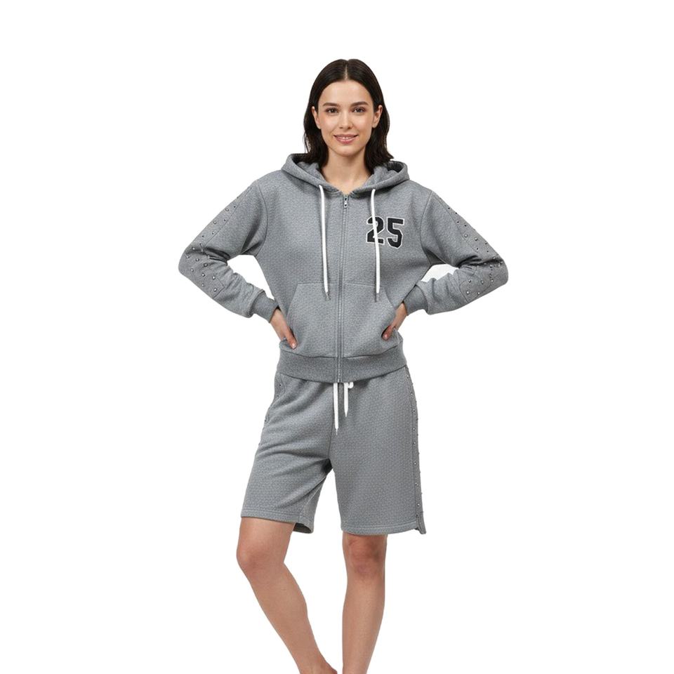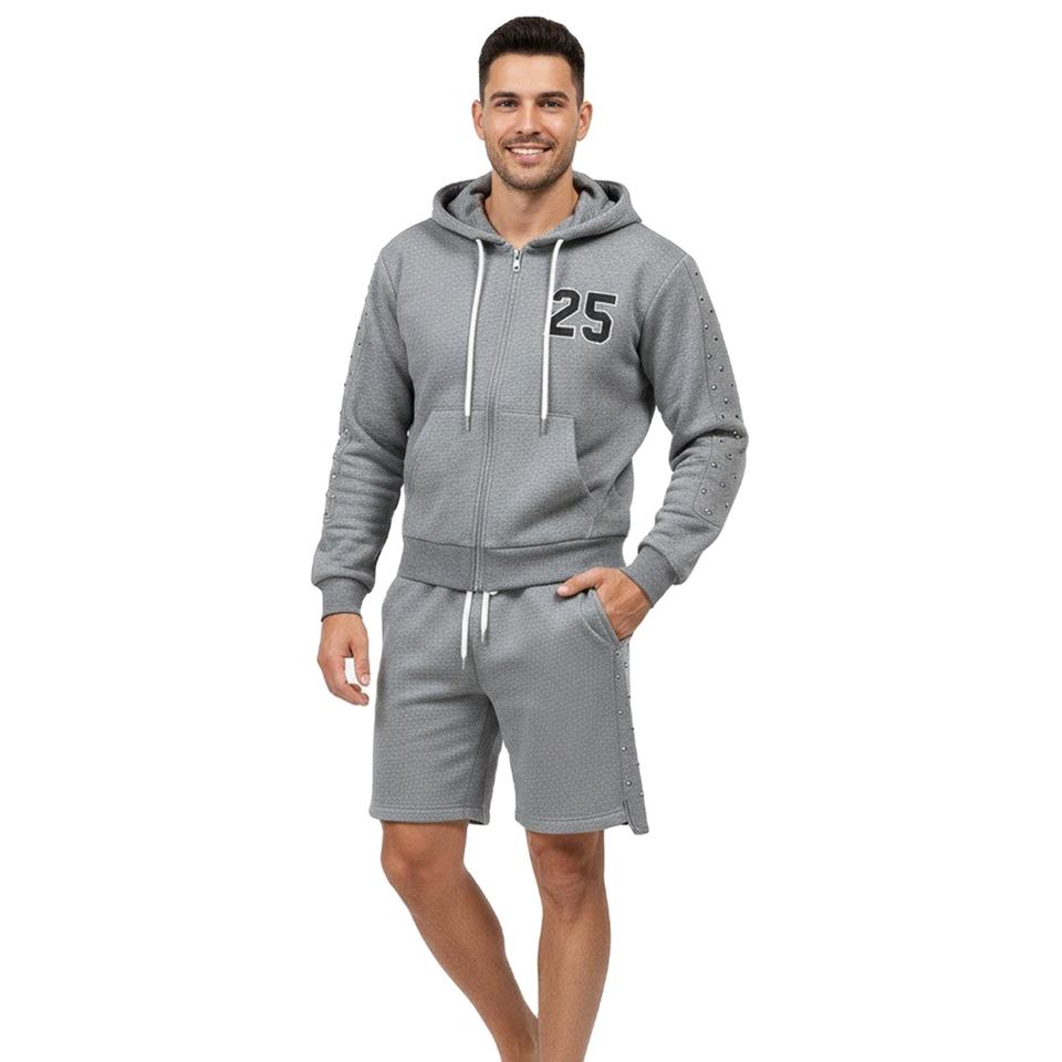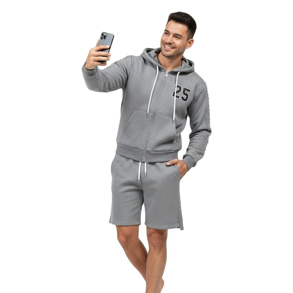 Ensemble sweat à capuche et short pour homme personnalisé avec strass | Survêtement décontracté à capuche avec fermeture éclair | Ensemble streetwear deux pièces unisexe