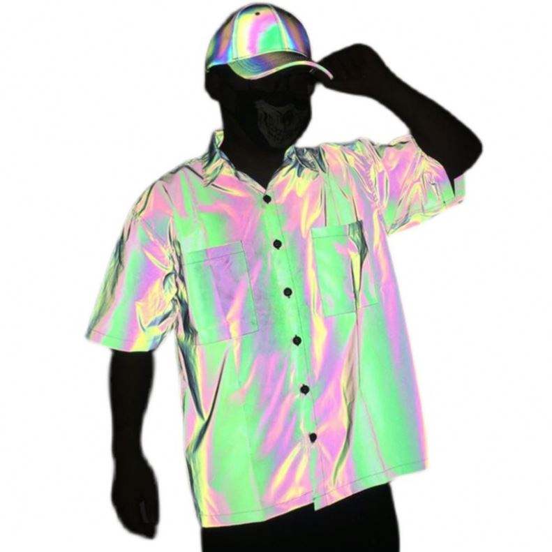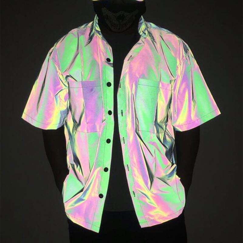 Chemise en satin à manches courtes pour homme, design décontracté à boutons, effet phosphorescent, anti-plis, respirante