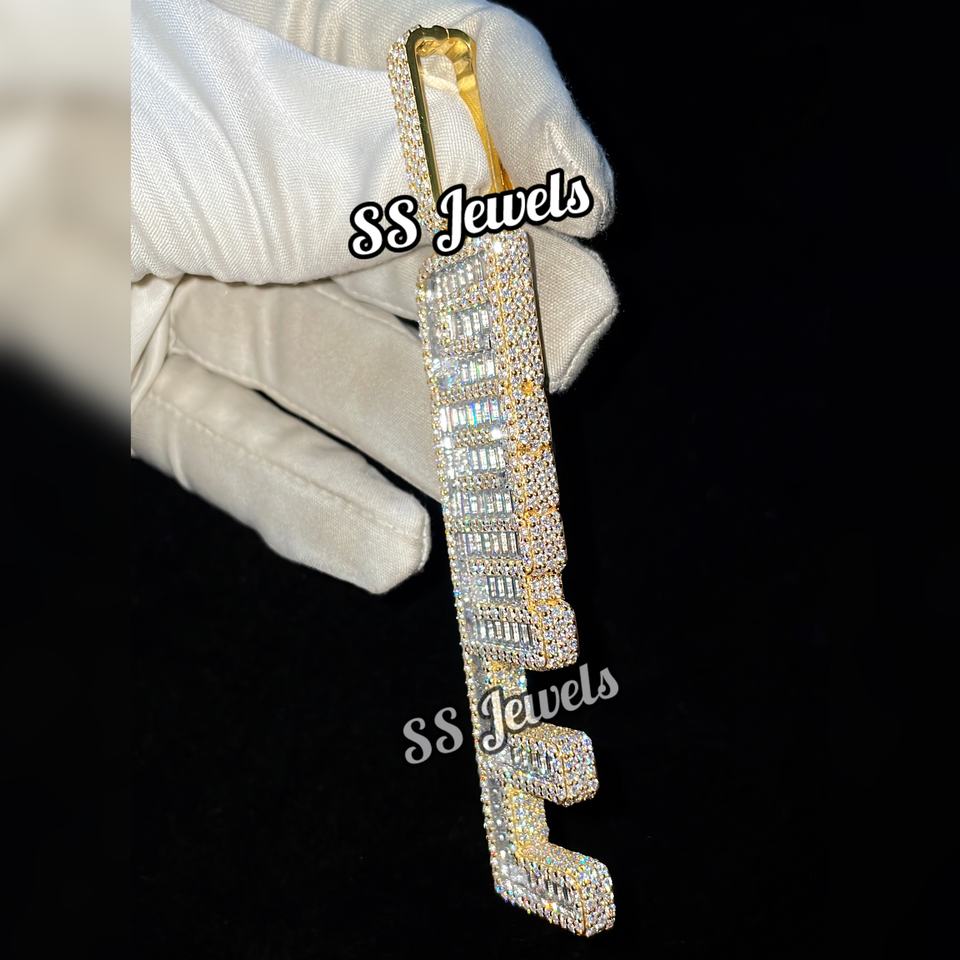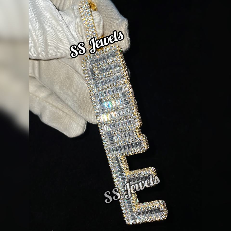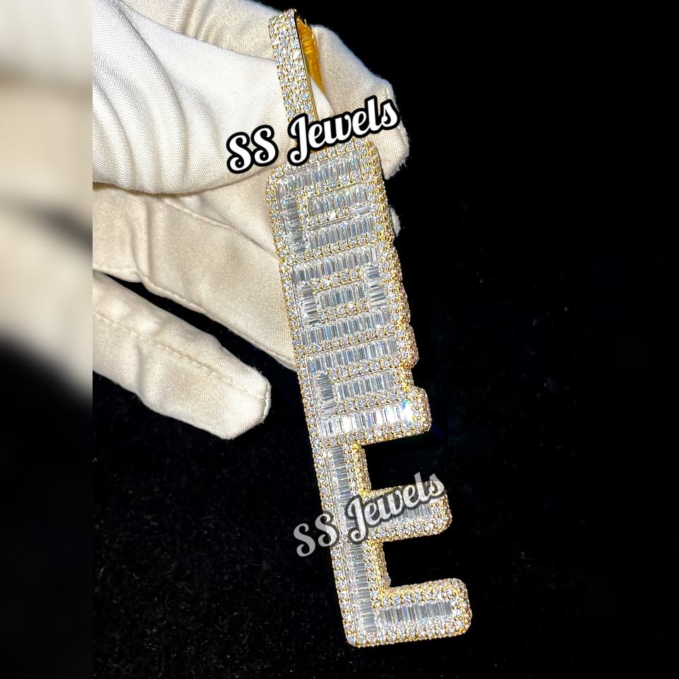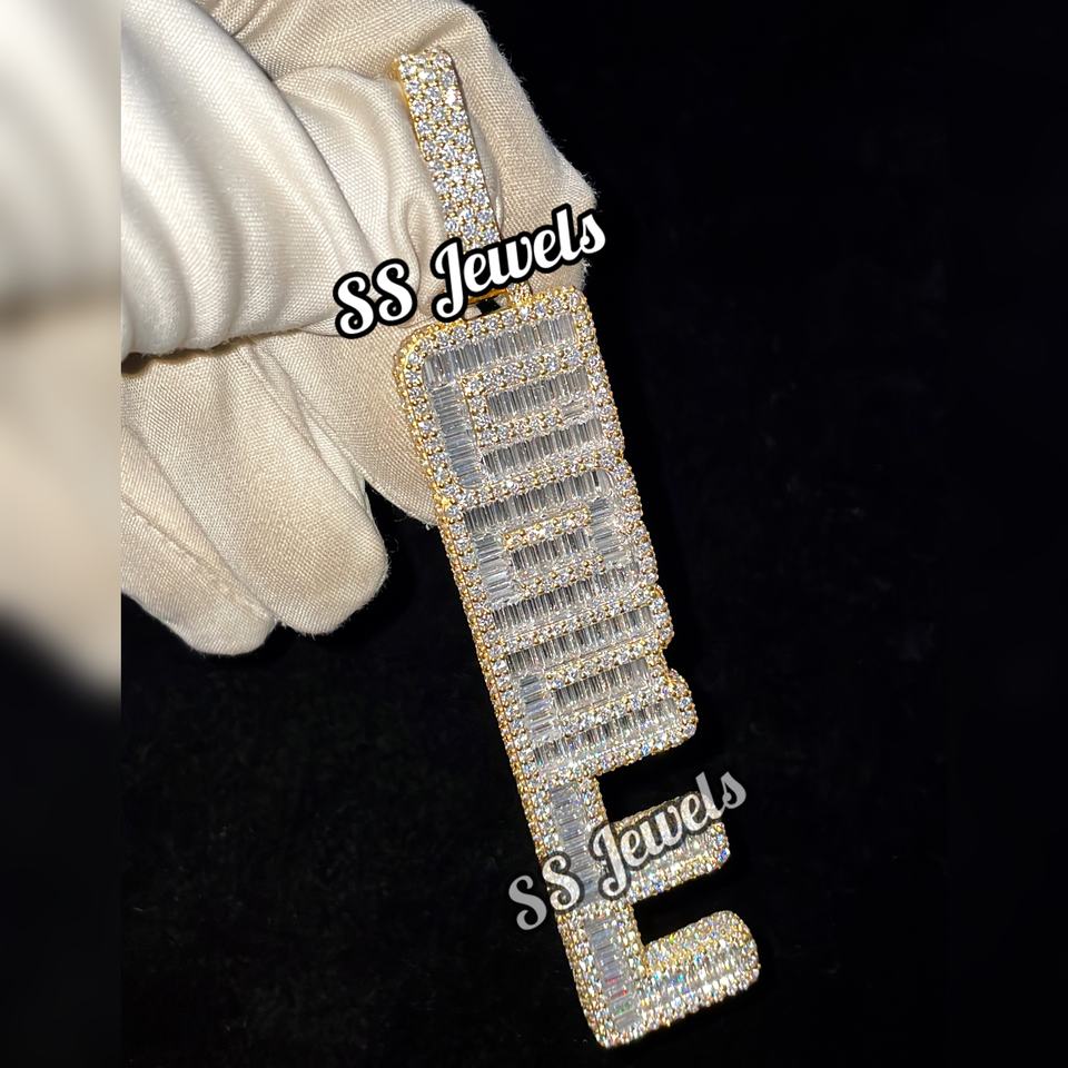Collier personnalisé pour homme en argent, style Hip Hop, avec pendentif Moissanite glacé, lettre verticale personnalisée, nom sur mesure, plaqué rhodium, serti griffe