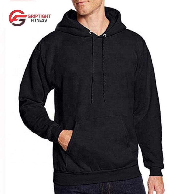 Pull-over à capuche d'hiver noir uni personnalisé pour hommes avec poche kangourou polaire lourde respirante grande taille