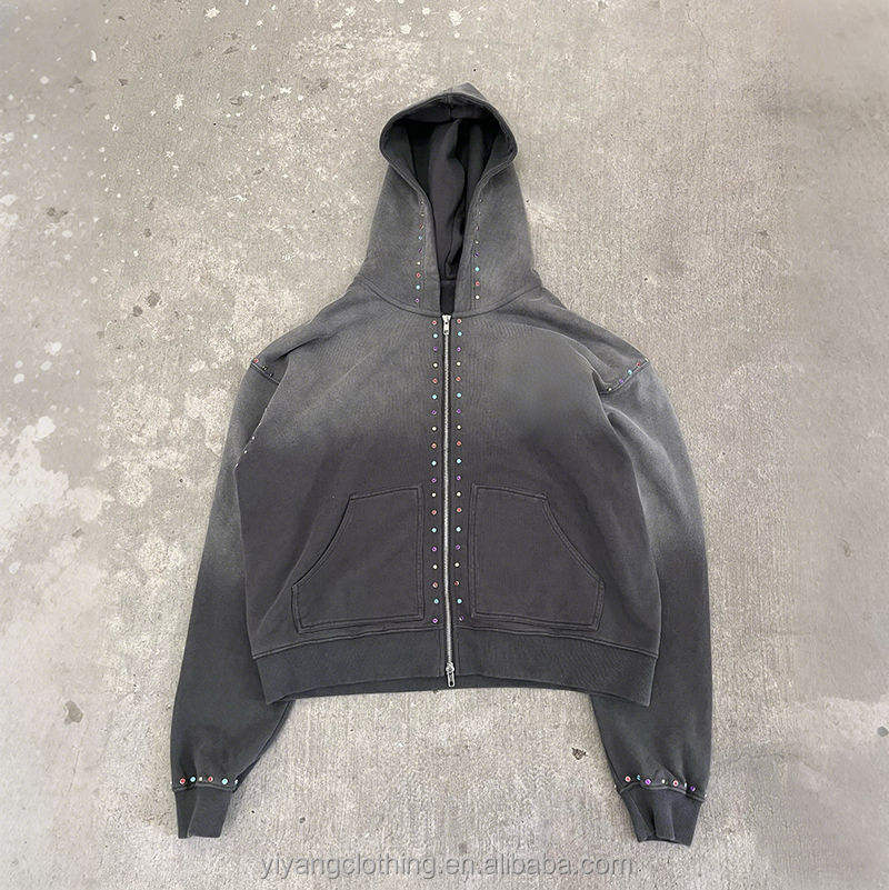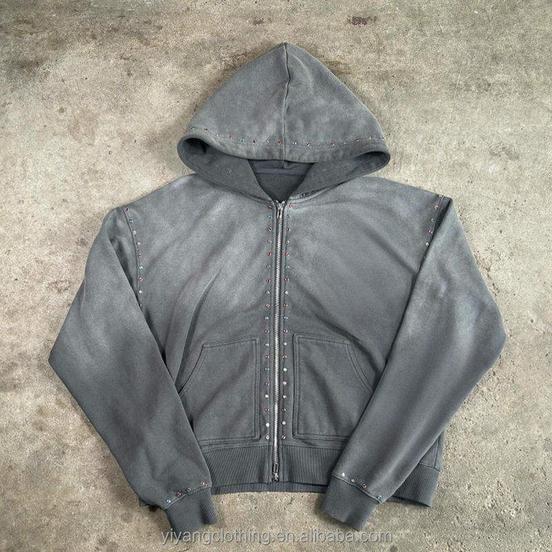 Ensemble de survêtement pour homme personnalisé, respirant, 100% polyester, pantalon de survêtement, sweat-shirt à fermeture éclair avec strass, pantalon de survêtement évasé