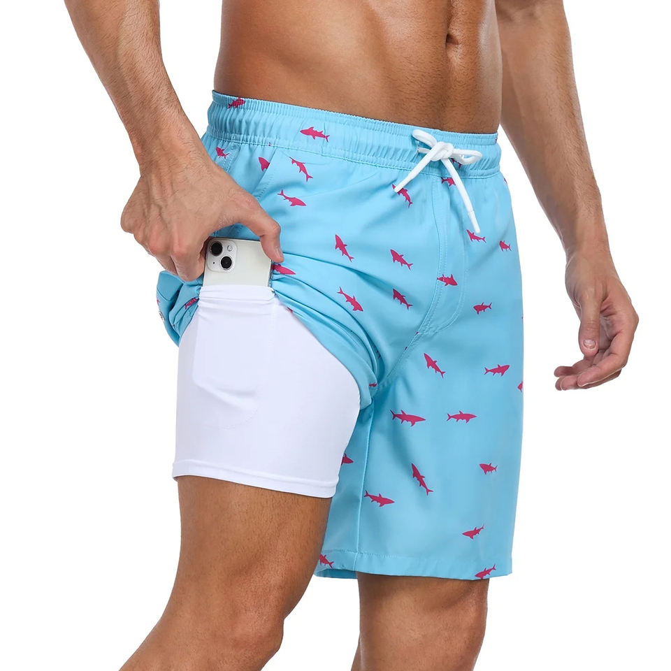 Short de bain uni pour homme personnalisé, doublure de compression 5,5 pouces, écologique, séchage rapide, respirant, 2-en-1, avec poches, décontracté