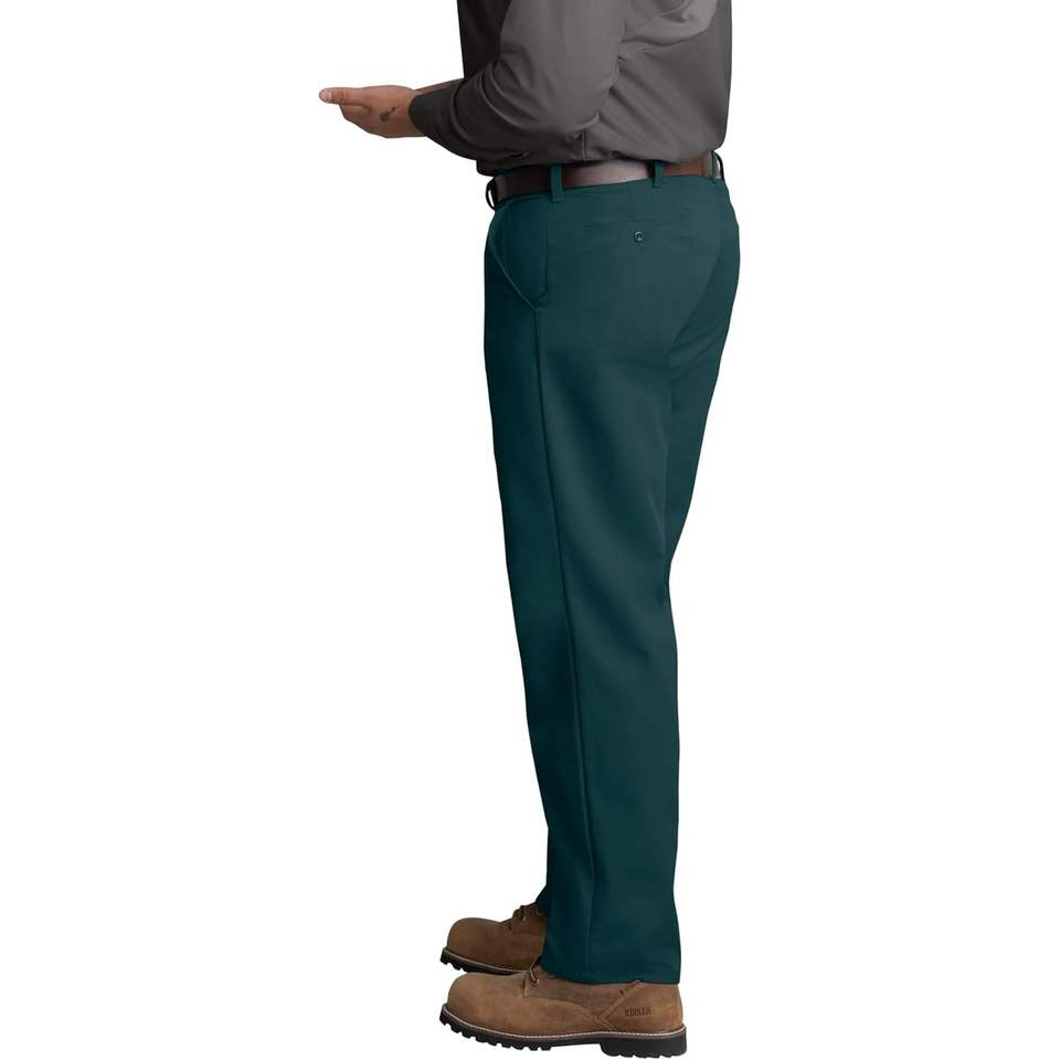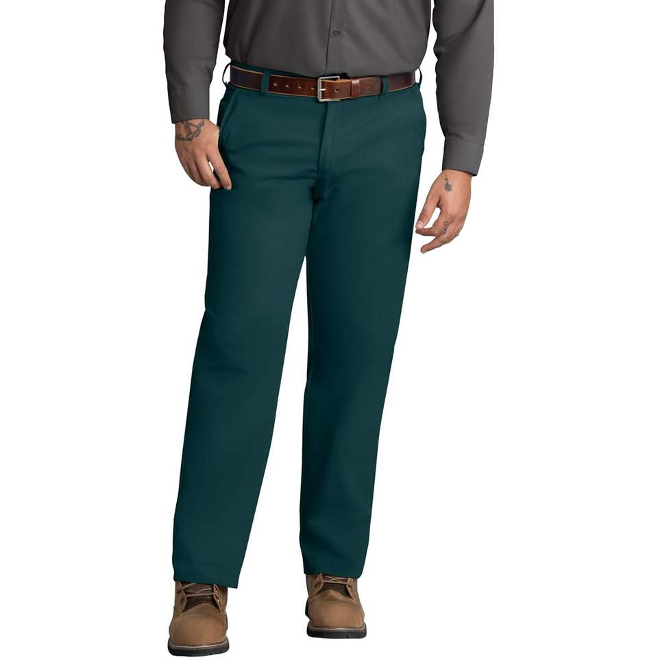 Pantalon de travail sur mesure pour homme en vert sapin 29W X 30L, résistant aux taches, design à devant plat
