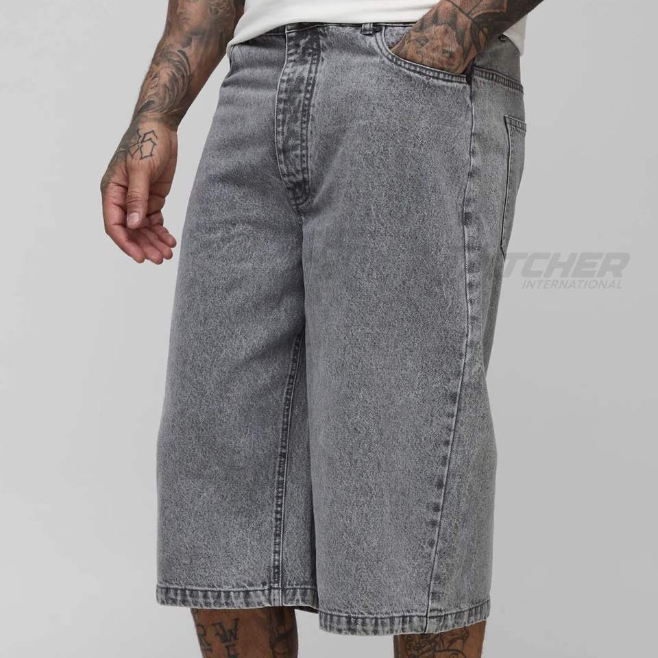 Shorts en jean droits personnalisés pour hommes, délavage vintage, streetwear Y2K, été, décontracté, respirant, écologique, en gros