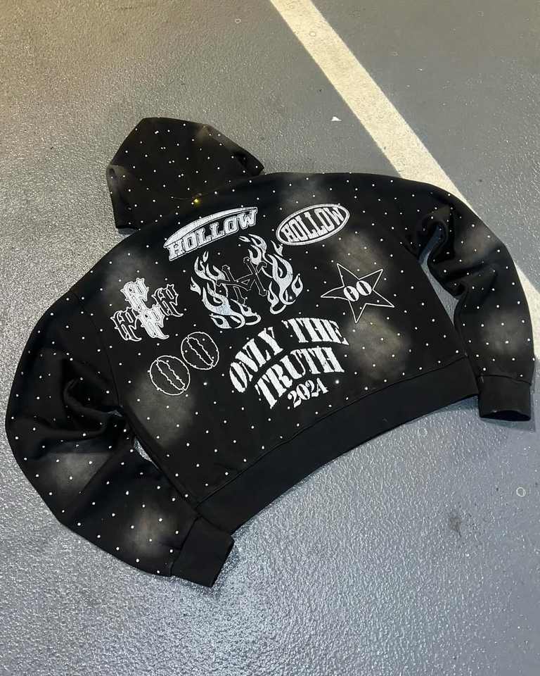 Veste à capuche de style urbain pour hommes, vêtements indispensables du fabricant avec broderie en strass, sweat à capuche de créateur