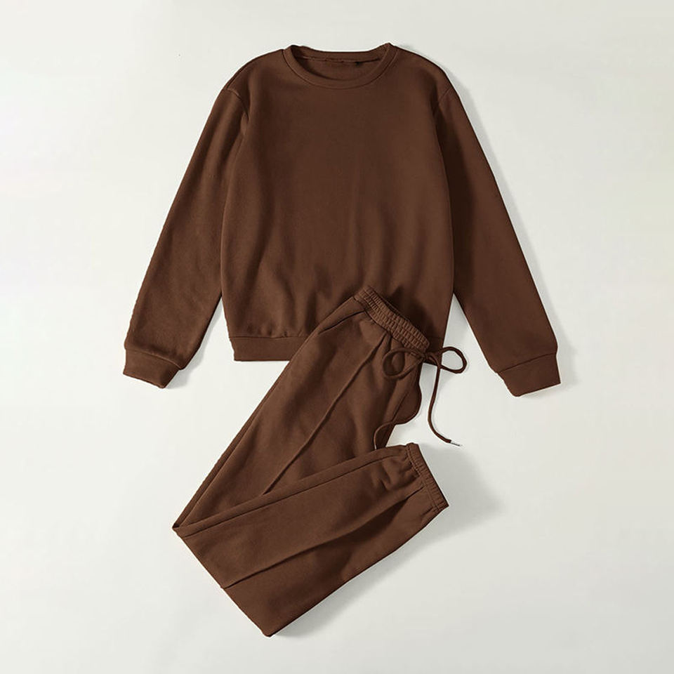 Custom Men's Streetwear Crew Neck Drawstring Jogging Suit 100% Cotton Solid Fashion Sweatshirt Seam Front Sweatpants Printed XL