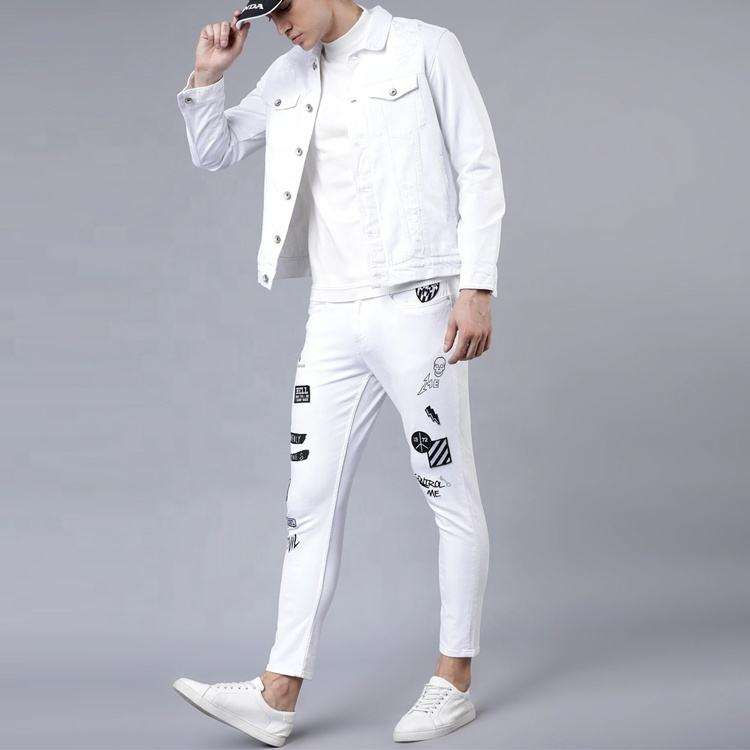 Veste de camionneur en denim blanc solide personnalisée pour hommes dernière conception 100% coton manteau d'extérieur décontracté logo personnalisé OEM