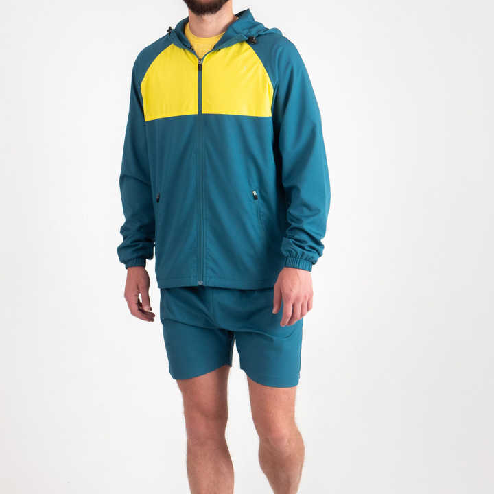 Ensemble de survêtement d'été personnalisé pour homme, deux pièces, avec fermeture éclair, coupe-vent en polyester, veste courte et short