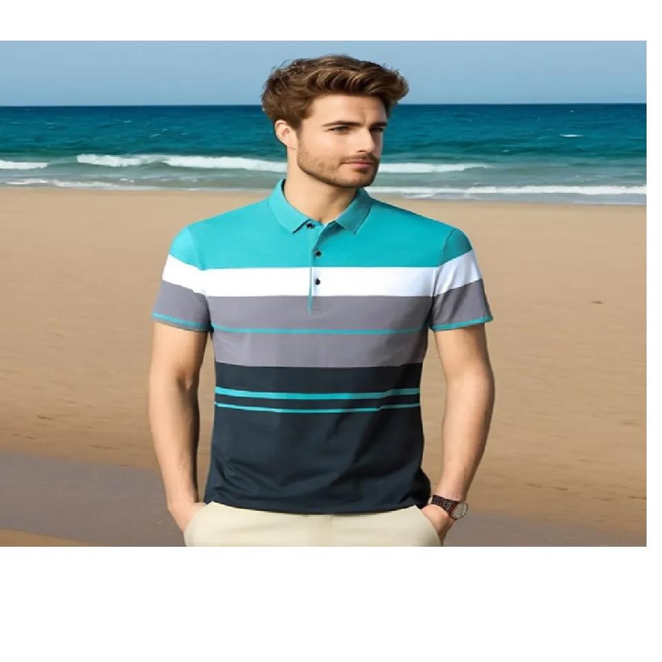 T-shirt polo à manches courtes d'été pour hommes, tissu tricoté anti-rides à motif solide, style décontracté et tendance