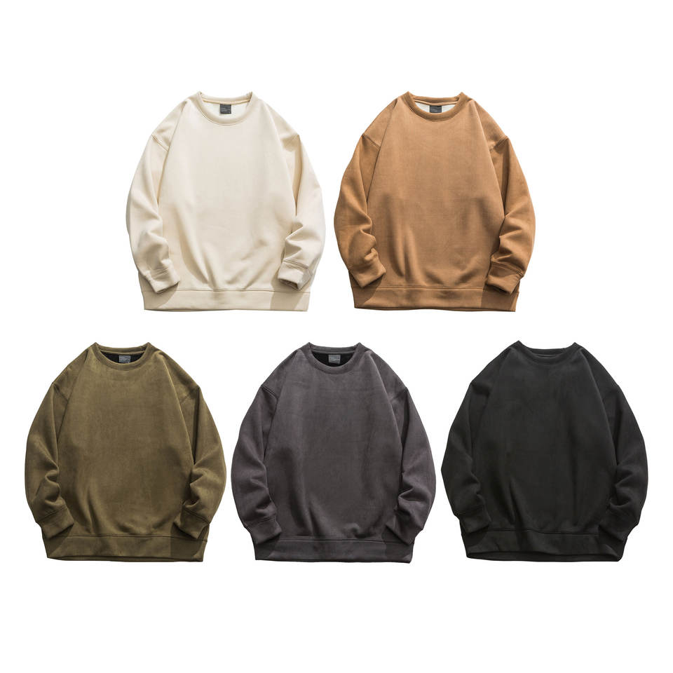Sweat-shirt personnalisé pour hommes 100% Polyester 420G Tissu en daim surdimensionné Polaire O-Neck Retro Blank Embroidery Sweatshirt pour hommes