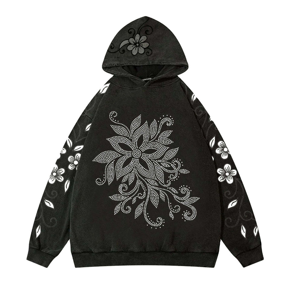 Sweat à capuche d'hiver épais en molleton français pour homme, coupe classique, décontracté, lourd, en molleton, avec strass, 100% coton mélangé, poche unie