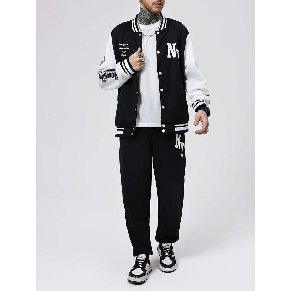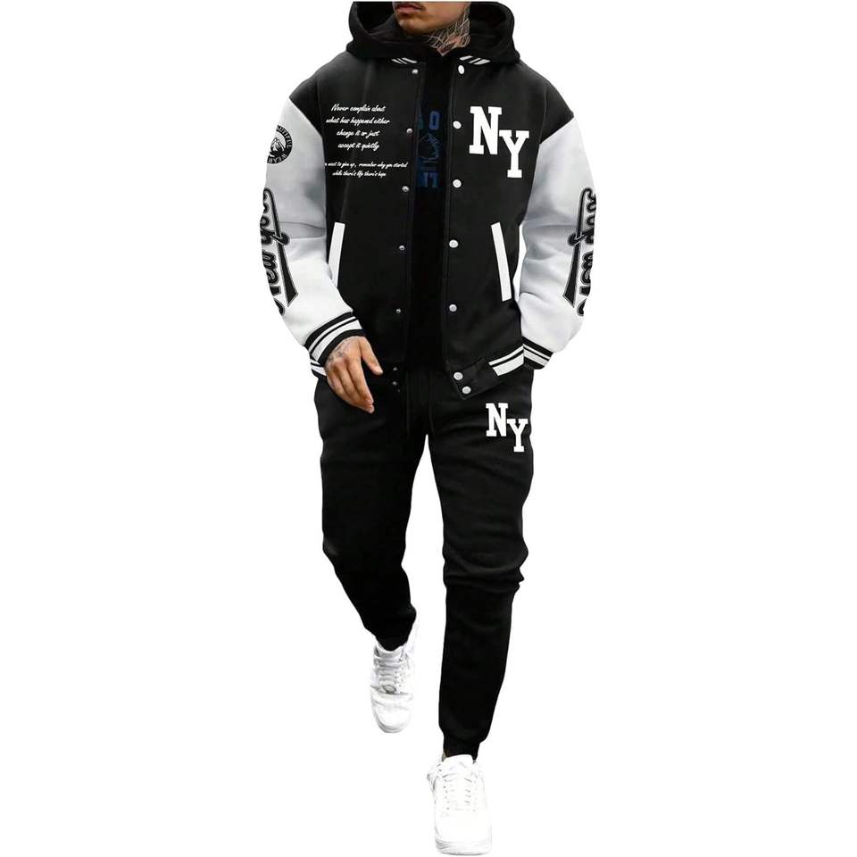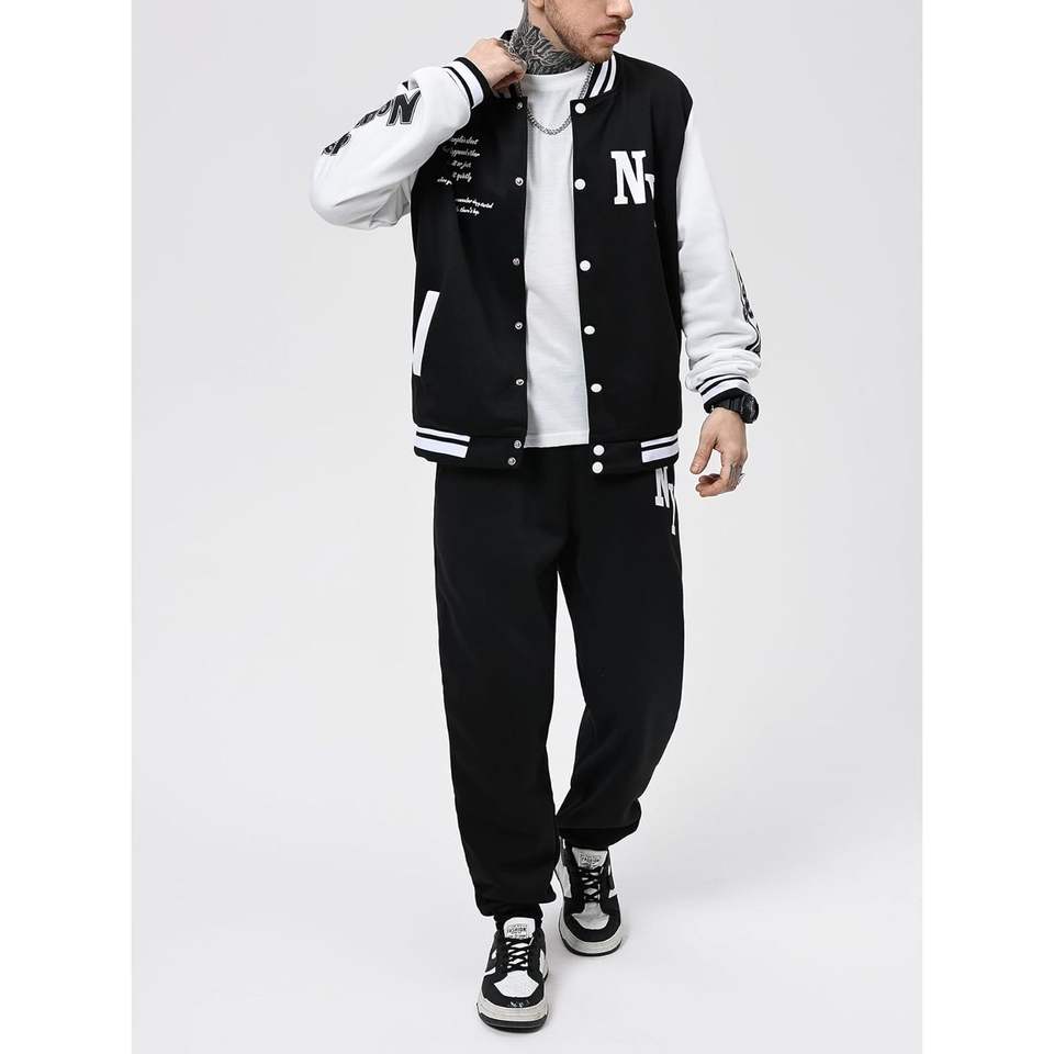 Ensemble de survêtement pour homme personnalisé, 2 pièces, veste et pantalon de style universitaire avec blocs de couleur et lettres graphiques, décontracté, respirant, manches longues