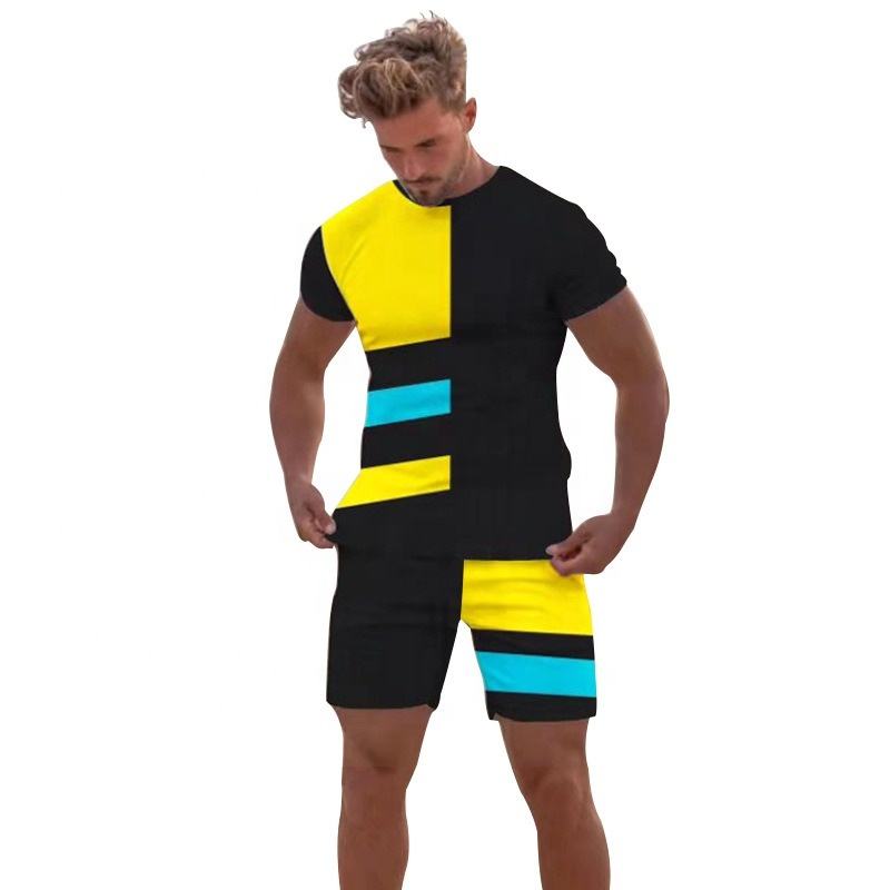 Ensemble de jogging deux pièces personnalisé pour hommes avec motif uni, manches courtes, ensemble t-shirt décontracté et short beau