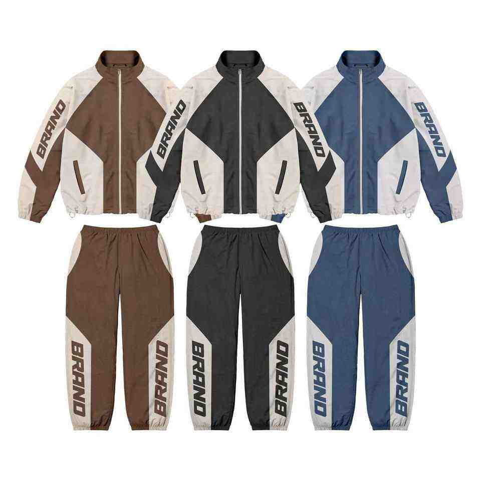 Ensemble survêtement pour homme personnalisé, deux pièces, coupe-vent et pantalon, sweat-shirts, nylon lourd, fermeture éclair, polyester, motif uni, costume d'hiver