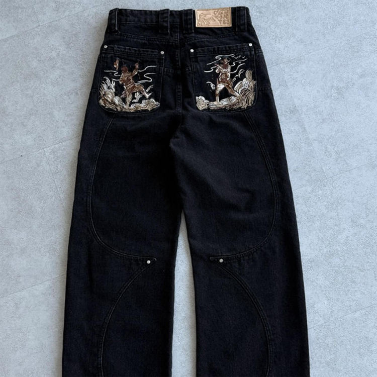 Pantalon en jean vintage personnalisé pour homme, style Y2K, effet usé, broderie 3D, jean baggy, broderie surdimensionnée, motif de designer