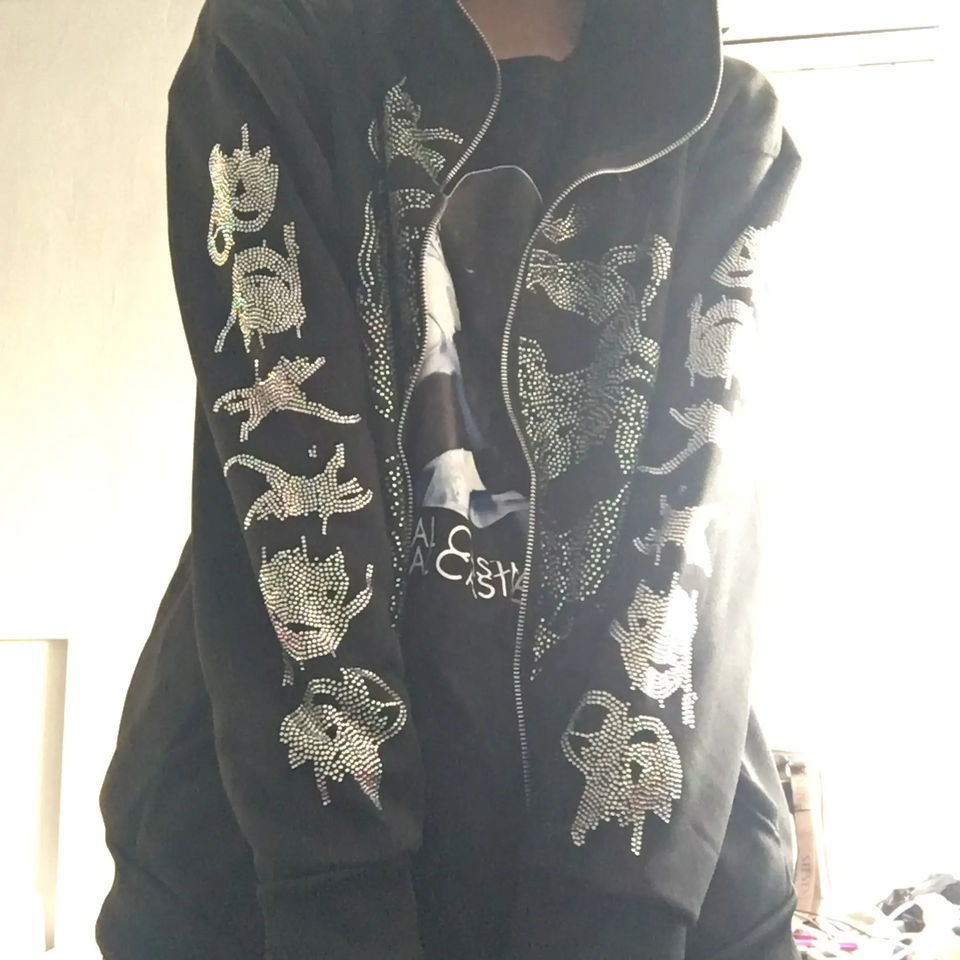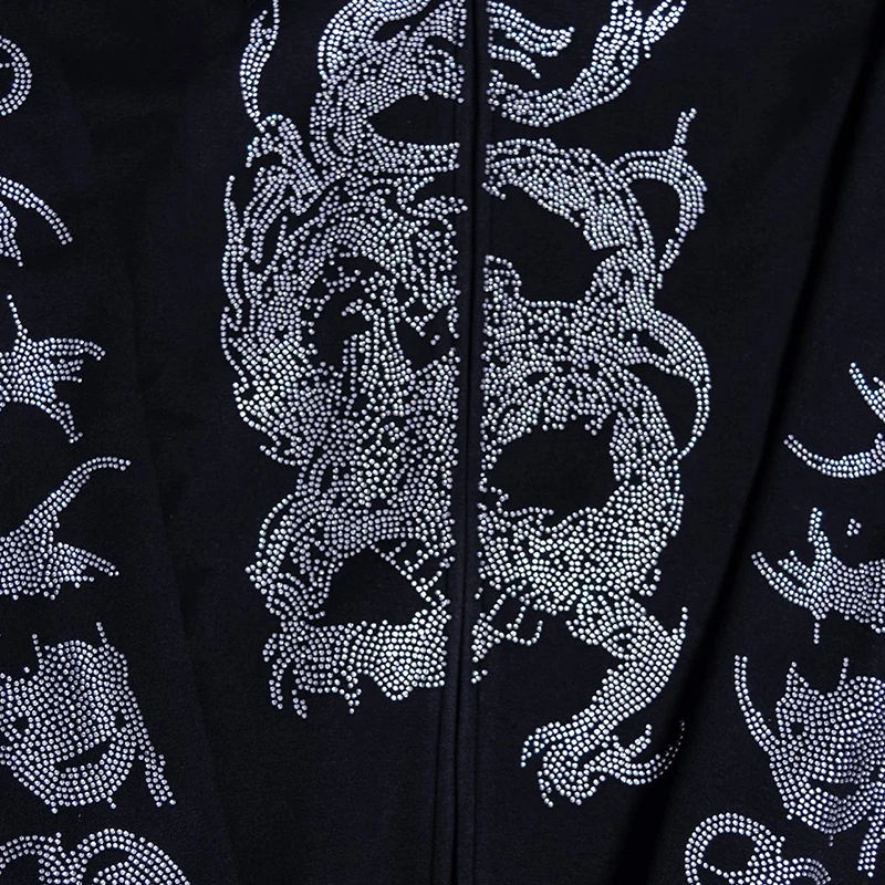 Custom Men's Vintage Washed Fleece Hoodie Sun Faded Zip Rhinestone Heavy Distressed Applique Embroidery Streetwear for Winter