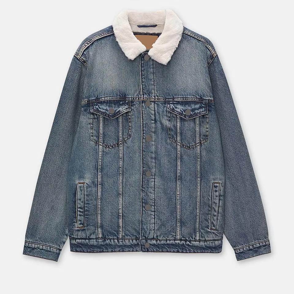 Veste de course vintage pour homme personnalisée, brodée, avec col en fourrure intégral, design boutonné en denim, 100% coton