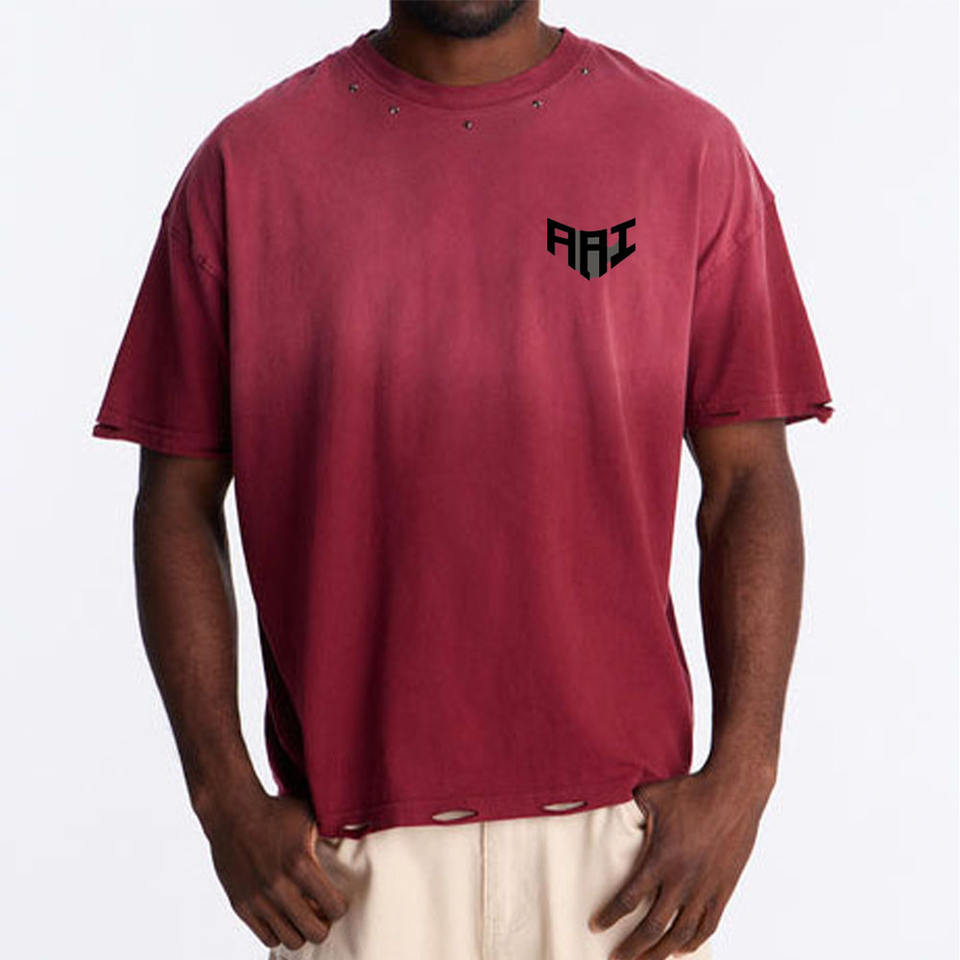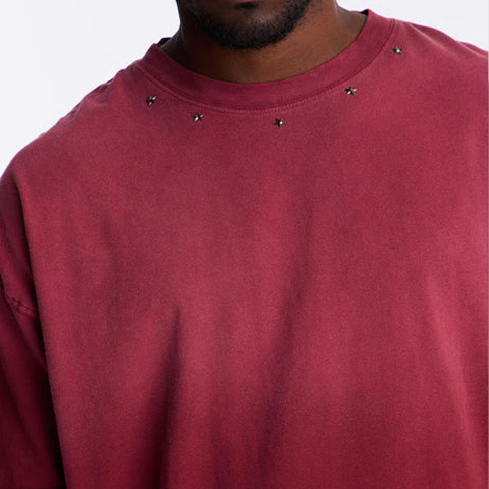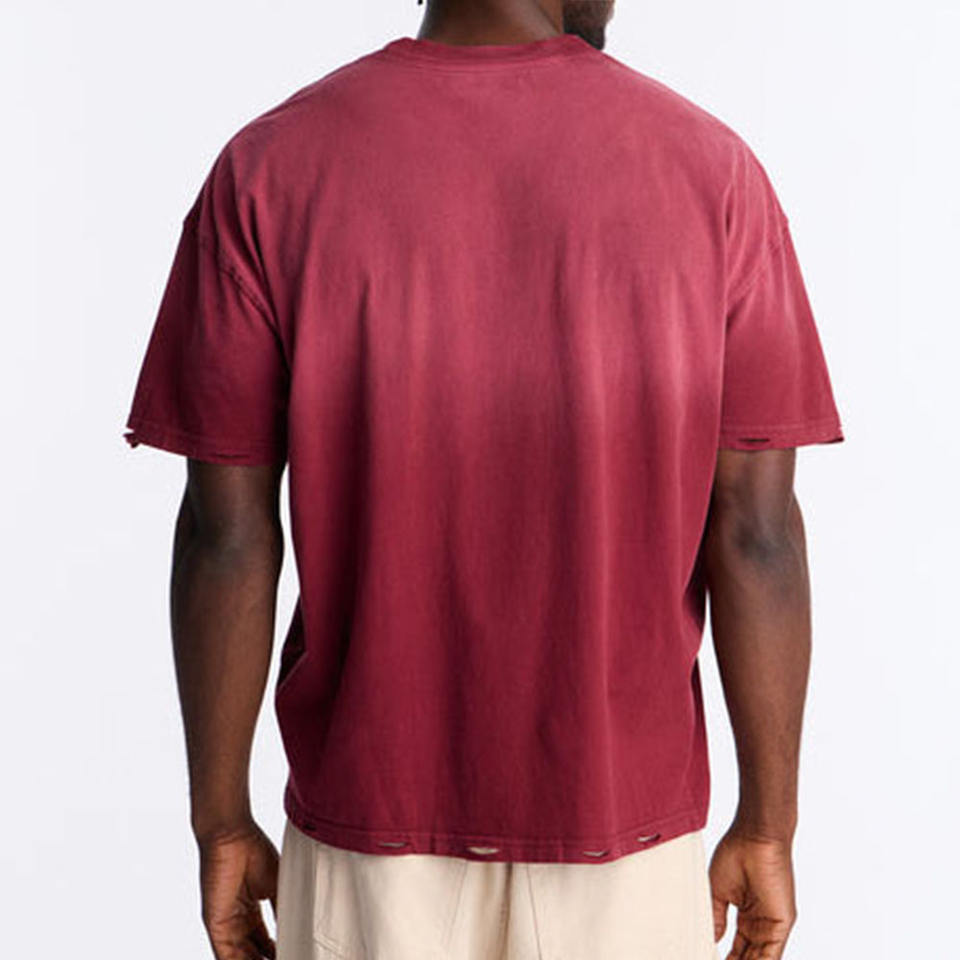 T-shirt en coton délavé bordeaux personnalisé pour homme, col rond, manches courtes, style vintage streetwear, fabricant OEM ODM, fournisseur USA