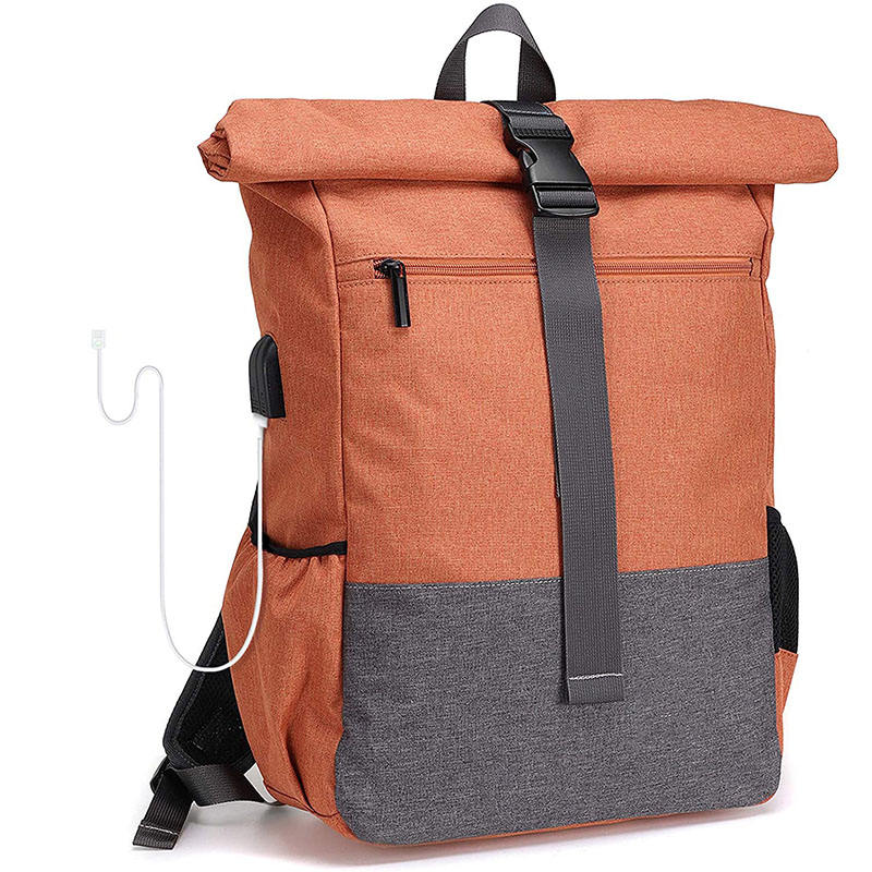 Sac à dos personnalisé pour homme, imperméable, à enroulement, avec fonction USB, doublure en polyester, fermeture pour usage professionnel et scolaire
