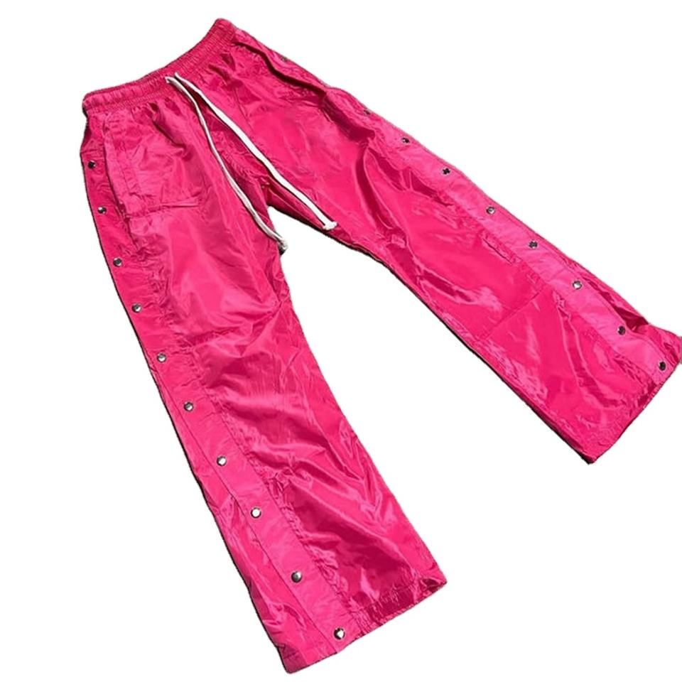 Pantalon de survêtement à boutons-pression et jambes larges pour hommes coupe-vent en nylon respirant piste de jogging anti-rides doublure en maille pantalon grande taille