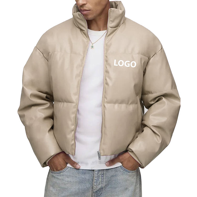 Blousons d'hiver matelassés et chauds pour hommes, coupe ample, en toile épaisse, col montant, coupe-vent, avec logo frontal, haute qualité
