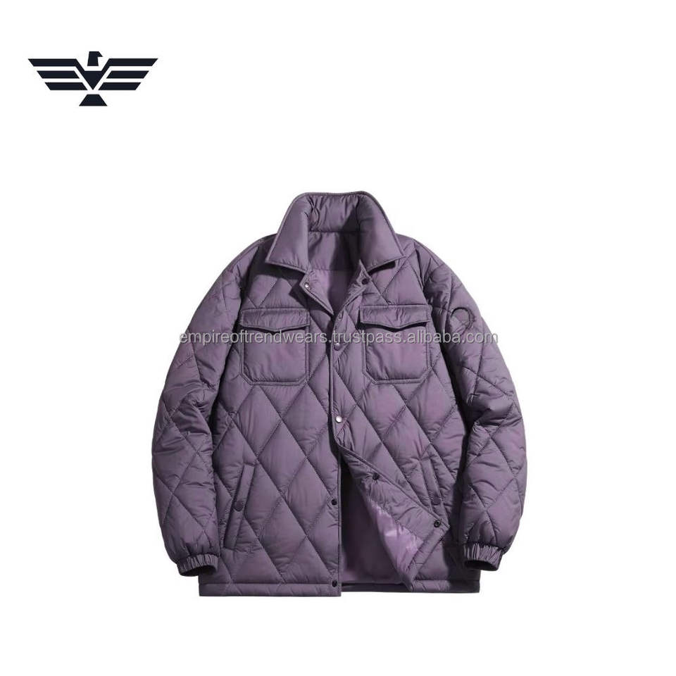 Veste d'hiver matelassée en toile matelassée à carreaux, coupe-vent, boutonnée, isolée, col montant, unie, sur mesure pour homme