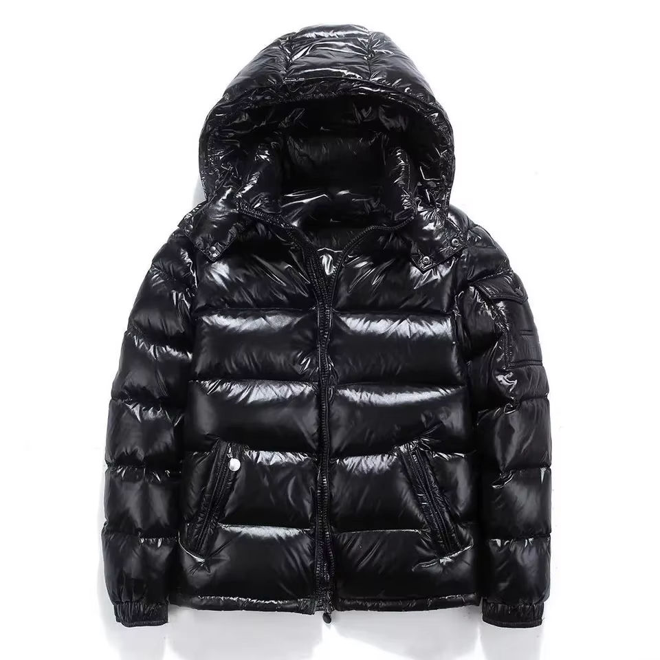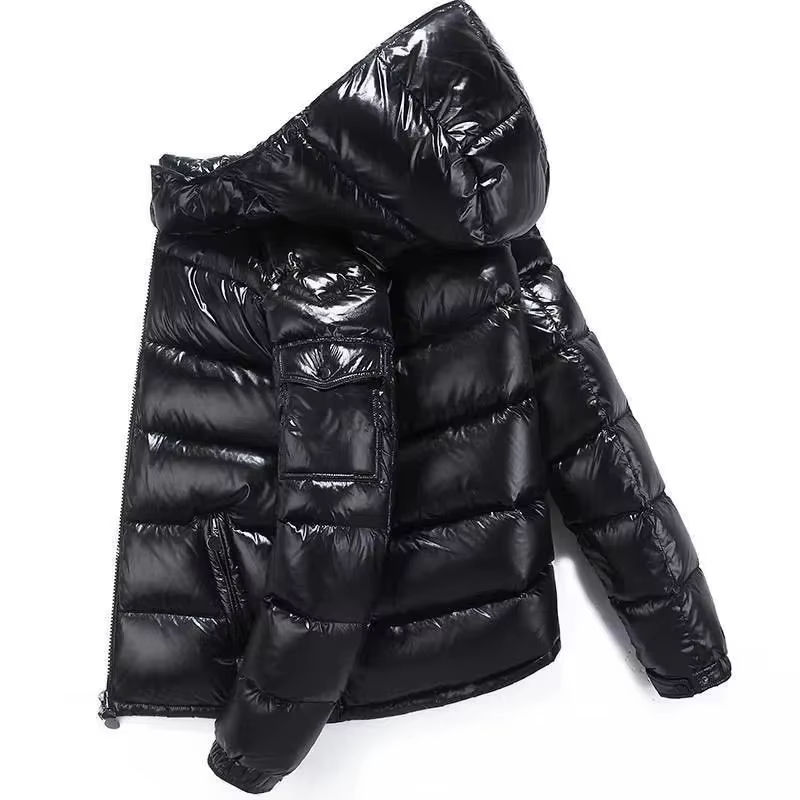 Veste d'hiver personnalisée pour hommes capuche brillante chaude et épaisse rembourrée Bomber imperméable fermeture à glissière coque en nylon durable teint uni