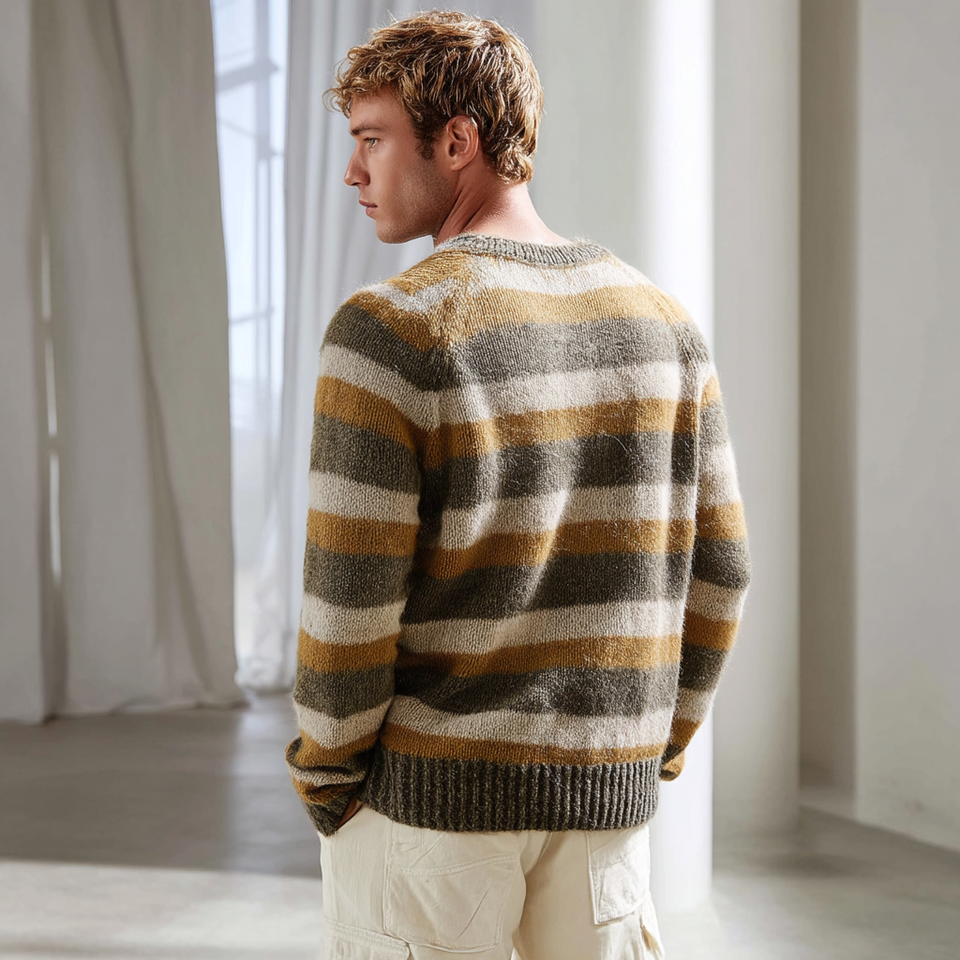 Pull personnalisé pour homme en laine/cachemire tricoté d'hiver, col rond, chaud, respirant, doux, tricot moelleux, motif rayé, personnalisé