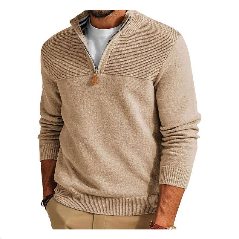 Pull d'hiver à fermeture éclair pour hommes, pull décontracté col polo, cachemire, laine et coton, pull pour hommes avec fermeture éclair