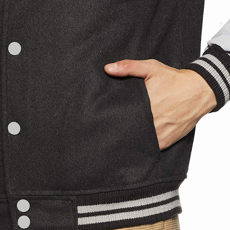 Veste universitaire en cuir véritable Letterman en laine pour hommes, noire avec patchs et étiquettes de logos brodés de couleur rouge, veste pour hommes