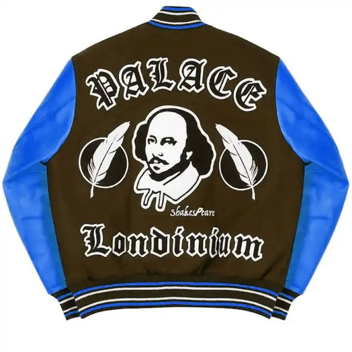 Veste universitaire en laine personnalisée pour homme, style sportif, col montant, noir et rouge, avec broderies, logos, patchs et étiquettes