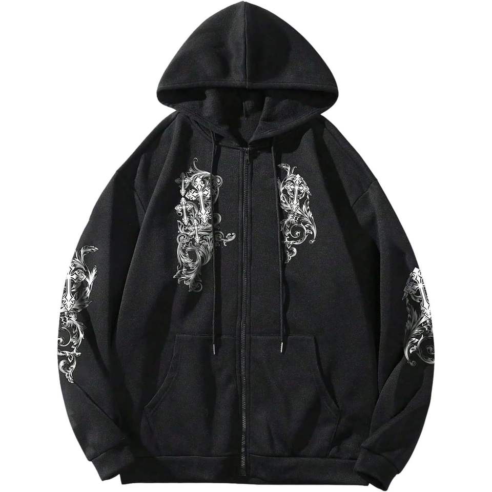 Sweat-shirt à capuche zippé pour homme personnalisé, imprimé gothique, 100% coton, tissu éponge français respirant, veste streetwear