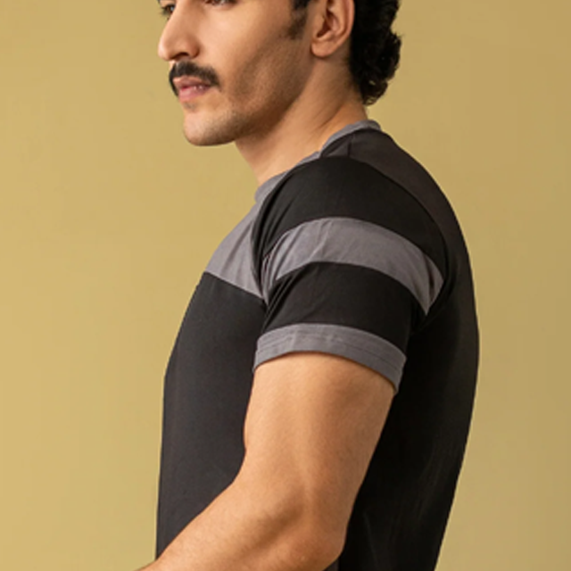 T-shirt à manches courtes personnalisé pour hommes T-shirt à col rond côtelé vierge de haute qualité et de luxe pour hommes avec empiècements