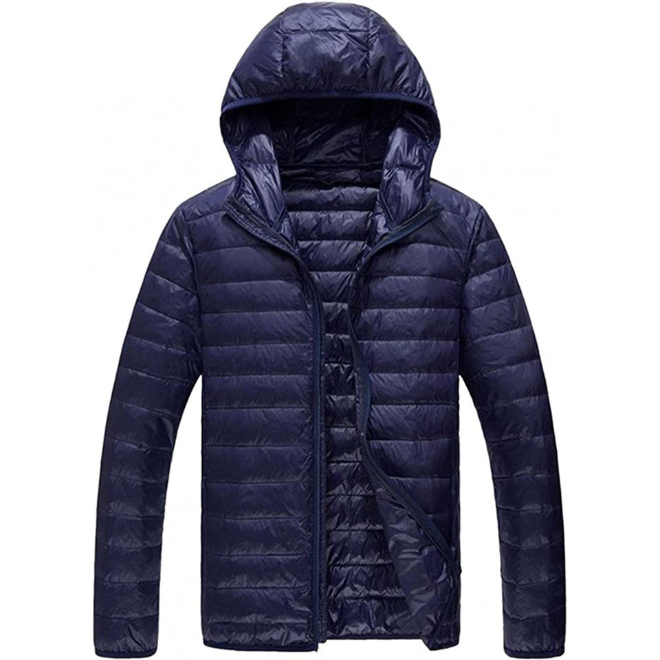 Veste matelassée en duvet noire pour homme sur mesure avec capuche, légère, matelassée, manteau d'hiver, fournisseur en gros