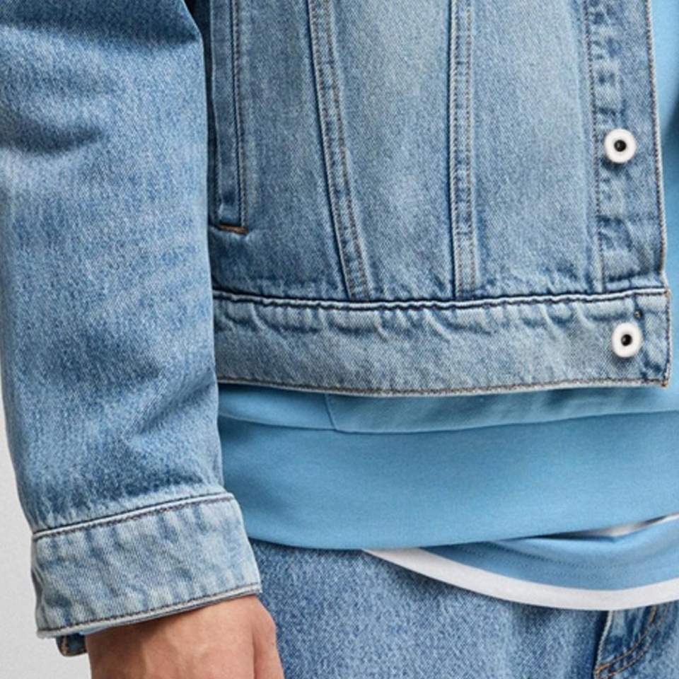 Veste en jean bleue personnalisée pour hommes, vêtement d'extérieur décontracté slim fit à l'allure délavée et délavée, pour la mode de rue et le style urbain