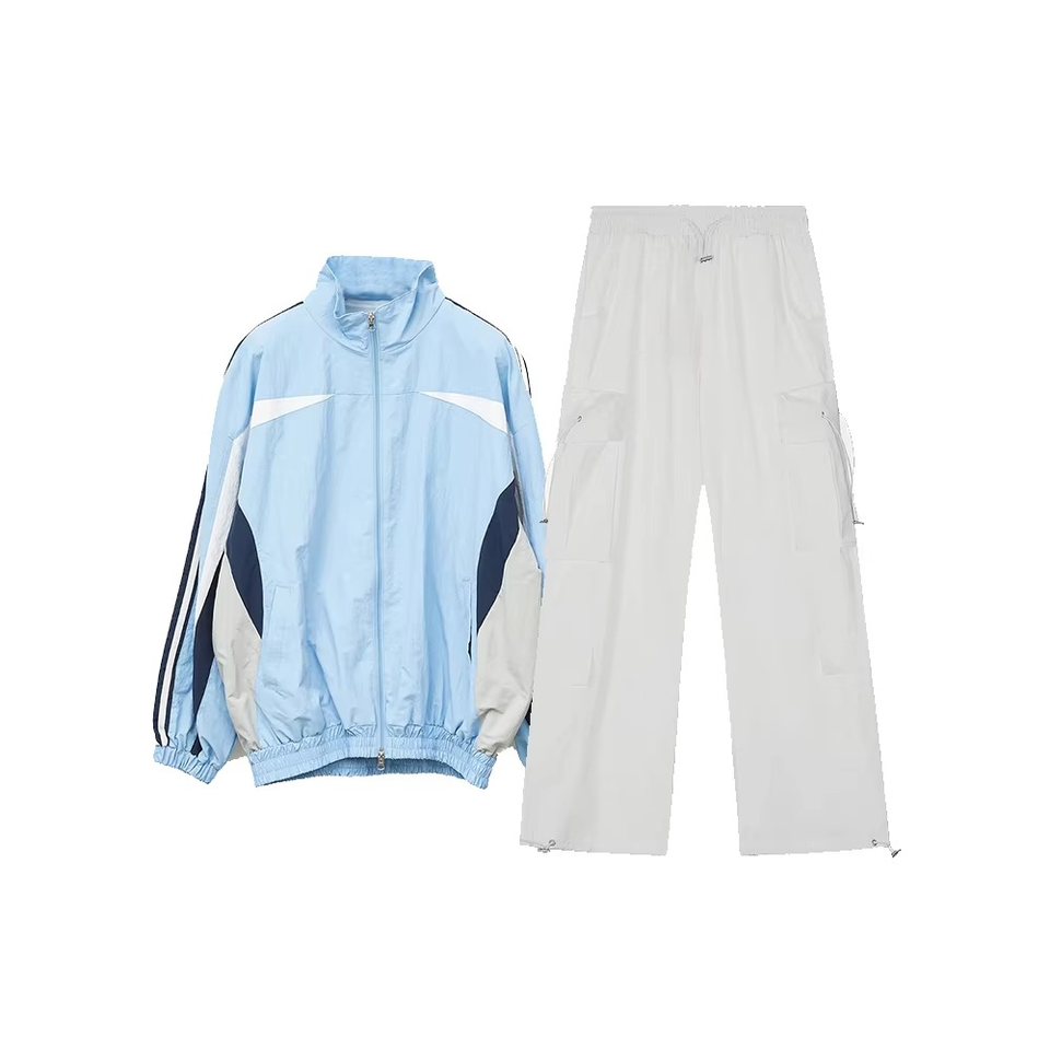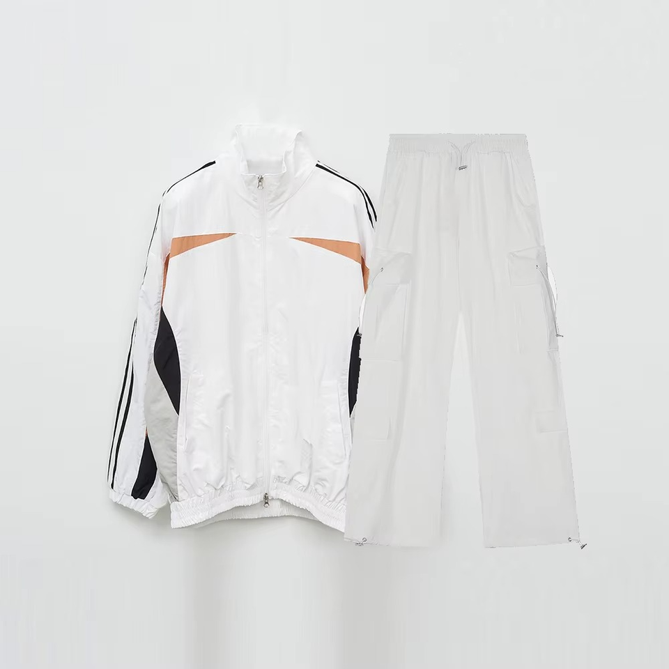 Survêtement en nylon personnalisé pour hommes Ensemble de jogging sport avec fermeture éclair Veste de survêtement coupe-vent cargo deux pièces pour hommes