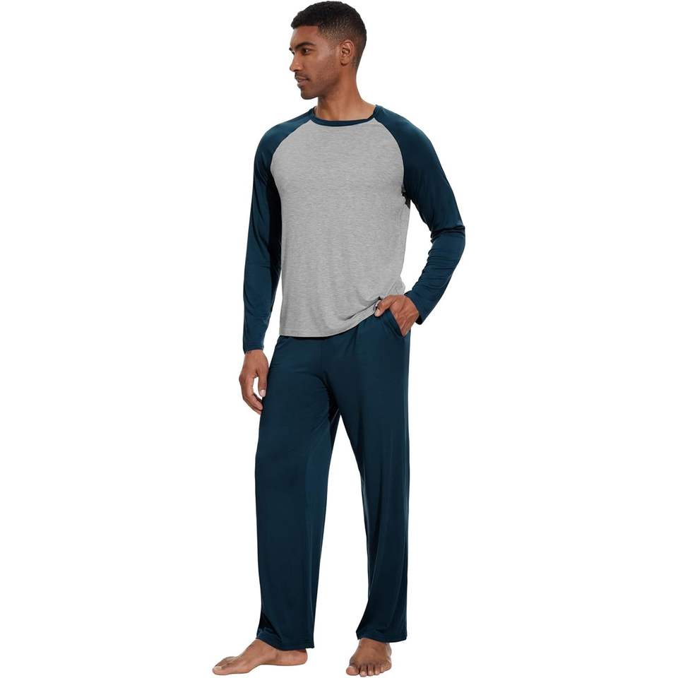 Ensemble de pyjamas pour homme personnalisé en viscose de bambou, vêtements de nuit à manches longues, 2 pièces, vêtements de détente avec pantalon, tailles S à XXL