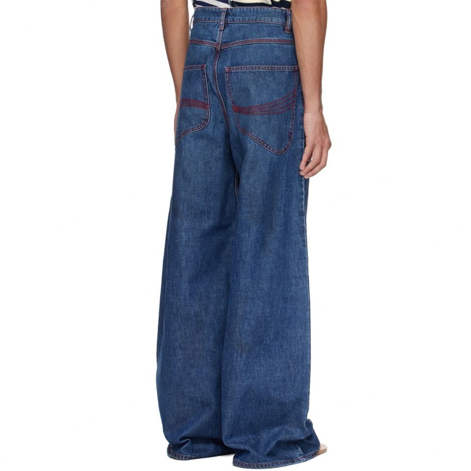 Jean en denim bleu rétro personnalisé pour homme, coupe ample, jambe large, droit, baggy, effet usé