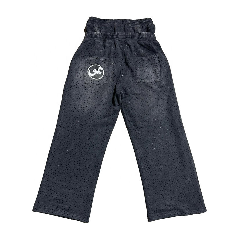Pantalon de survêtement décontracté pour homme, personnalisé, avec strass, double taille, style streetwear, baggy, hip-hop, 100% polyester