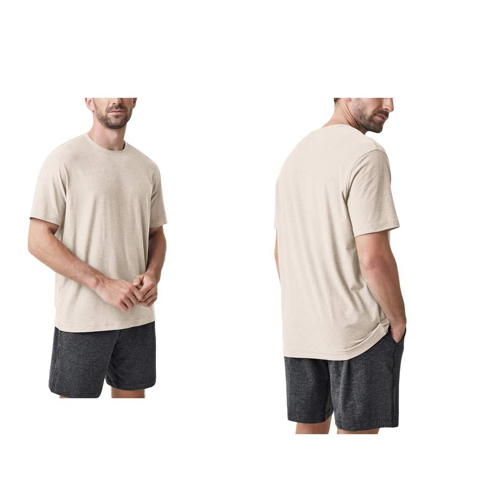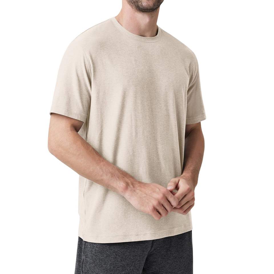 T-shirt pour homme personnalisé en coton beige sable uni, col rond, manches courtes, décontracté, respirant, doux, léger, à porter tous les jours en été