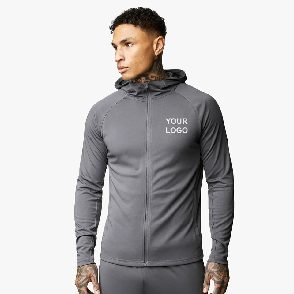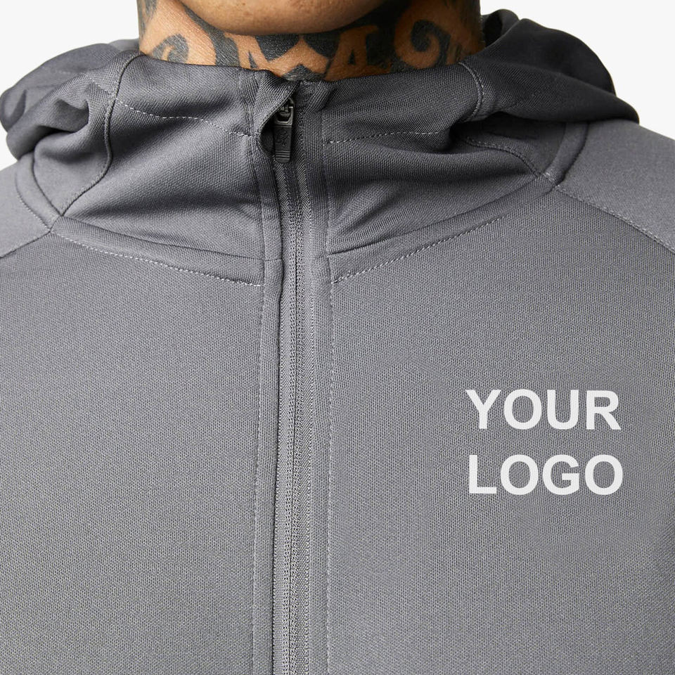 Survêtements personnalisés pour hommes, ensembles de jogging avec fermeture éclair, survêtement de sport, veste avec logo personnalisé, survêtements pour hommes, ensembles 2 pièces gris
