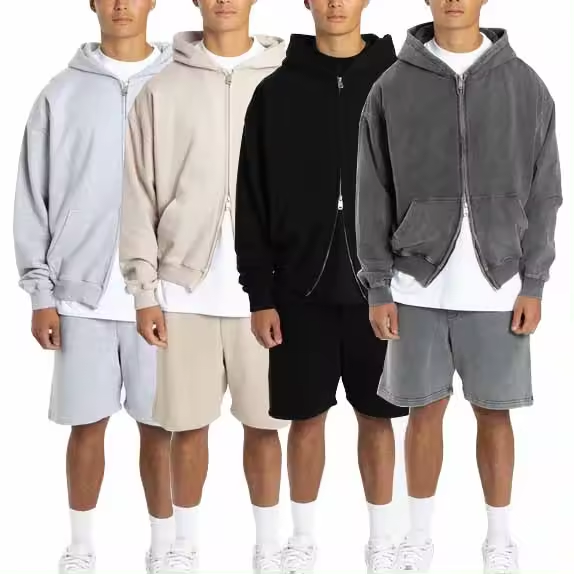 Pull-over à capuche et short vierge délavé à l'acide pour hommes personnalisés ensemble deux pièces vintage de polaire d'hiver à séchage rapide