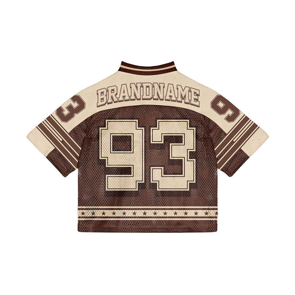 Maillot de football américain à manches courtes imprimé en maille personnalisée, impression par transfert thermique, 100% polyester, taille plus, évacuation de l'humidité, protection UV