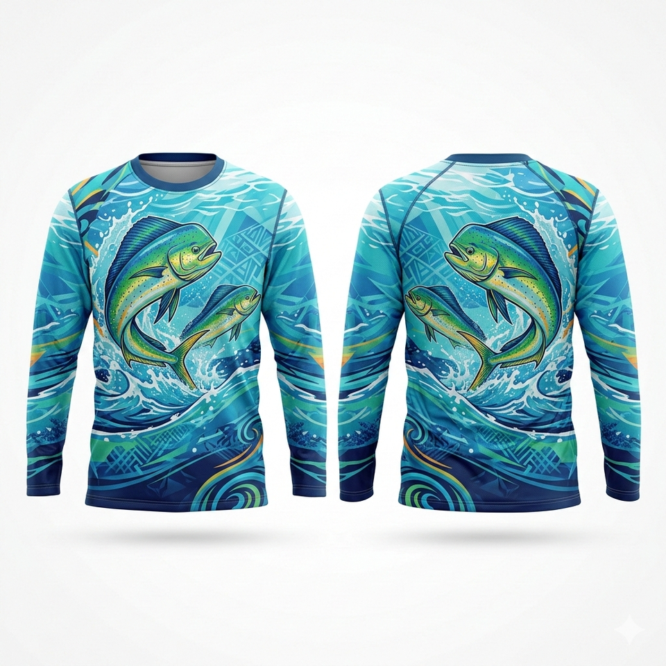 Maillot de pêche personnalisé unisexe en polyester respirant, anti-humidité, séchage rapide, protection UV, antibactérien, sublimé, manches longues