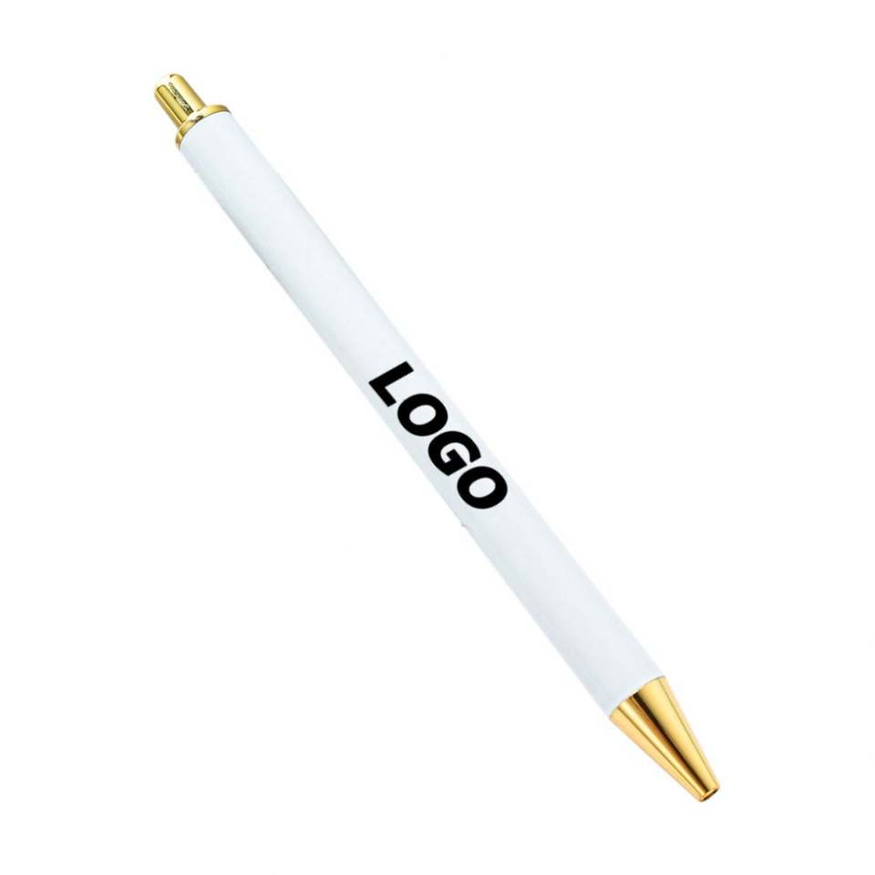 Stylo à bille en métal personnalisé avec autocollants en cristal, stylo à bille blanc, cadeau promotionnel, design sans clip
