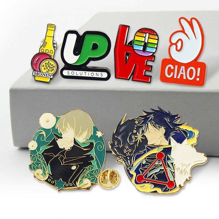 Custom Metal Complex Japanese Cute Cartoon Lapel Pin Badge Hard Enamel Japan Anime Hat Pins Chain UV Printing Bronze Brass Type