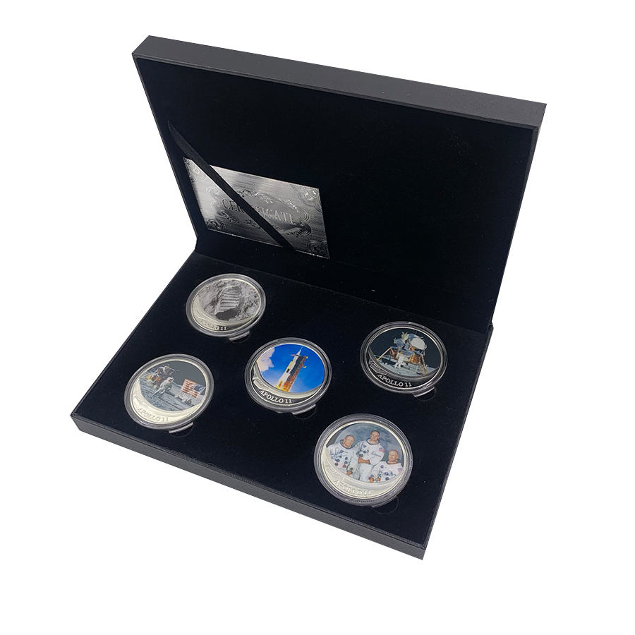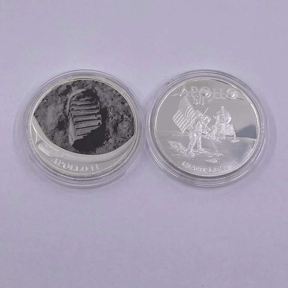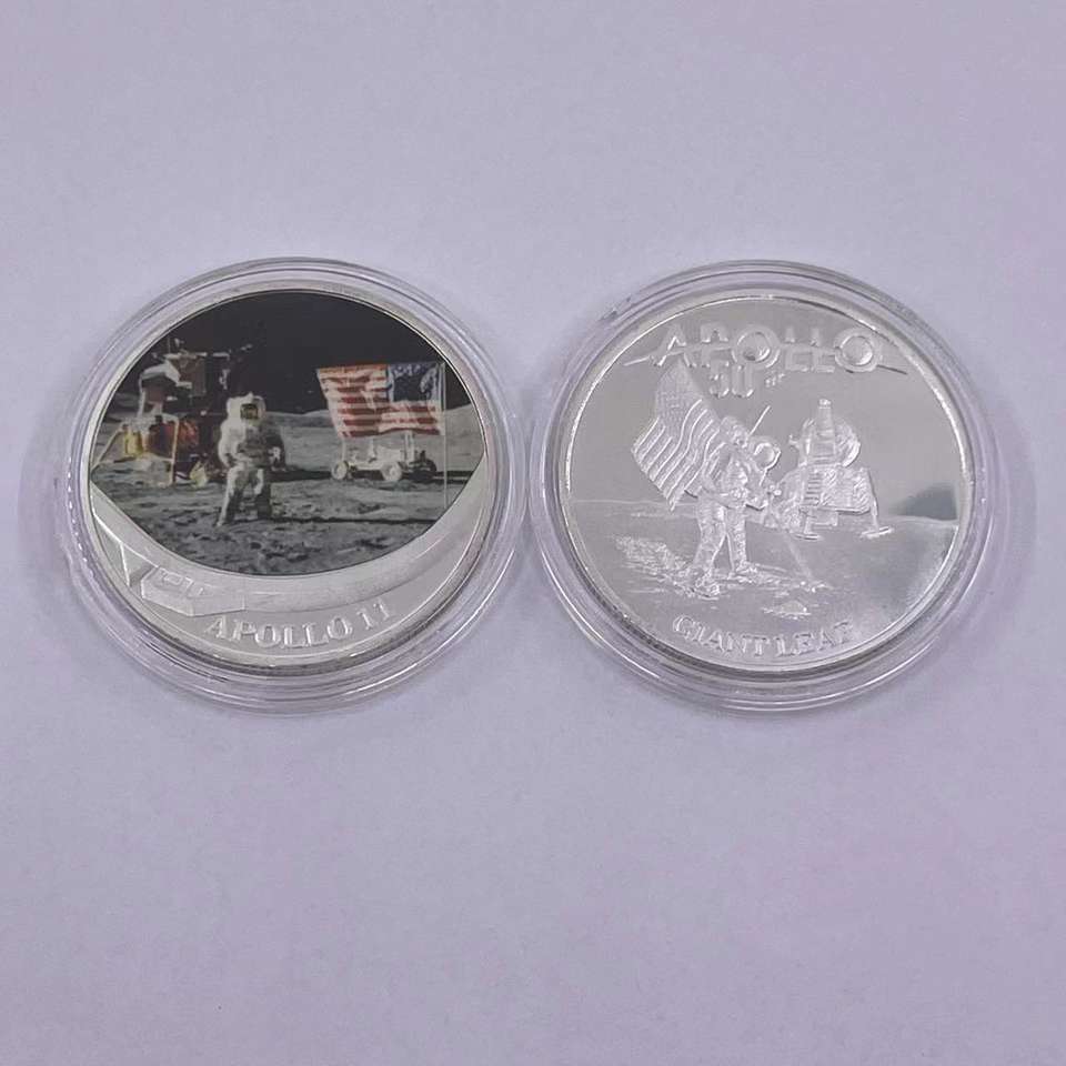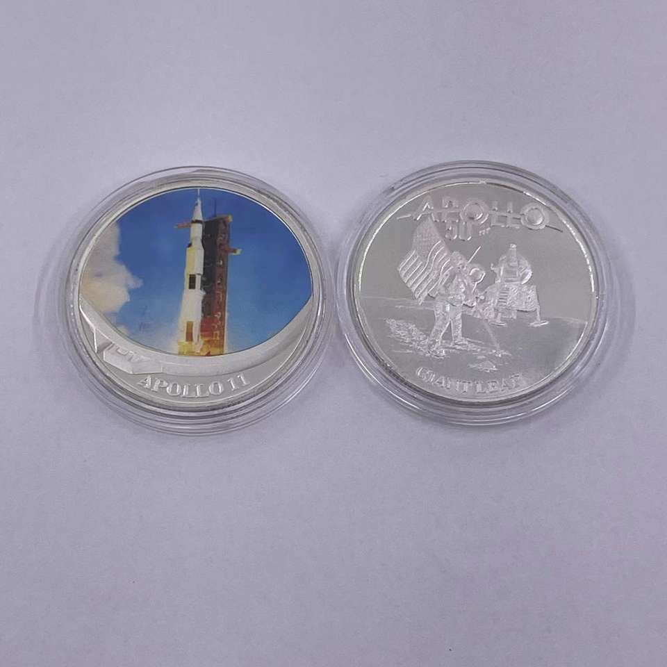 Pièce en métal personnalisée artisanale plaquée argent Apollo 11 atterrissage sur la lune pièce de défi souvenir du 50e anniversaire dans une jolie boîte