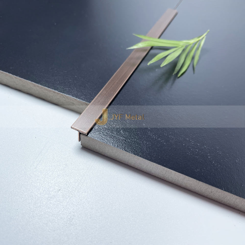 Bande de finition décorative en acier inoxydable coloré effet miroir, profil en T pour carrelage
